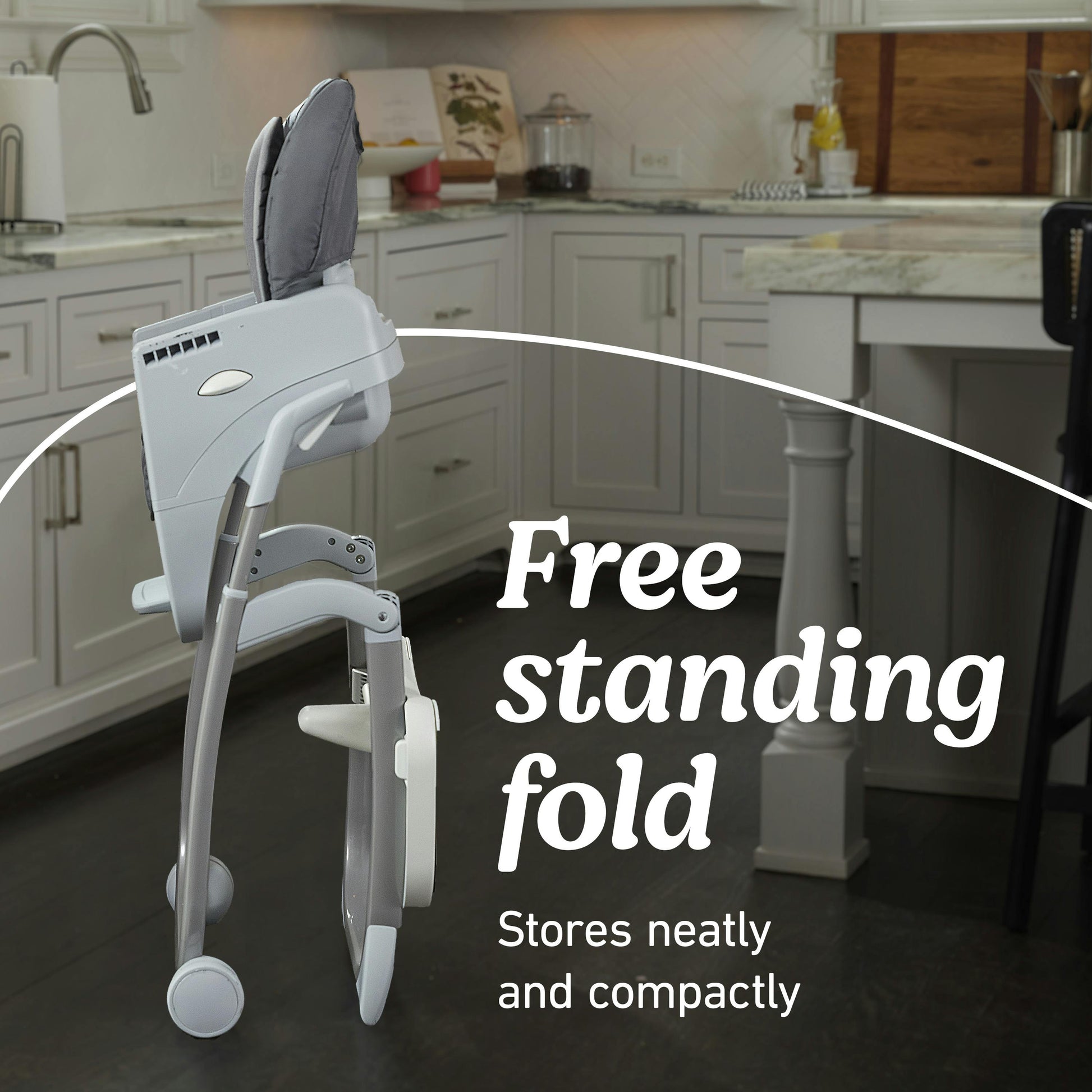 The Graco DuoDine DLX 6-in-1 Highchair offers 6 growing stages from infant highchair to seating two kids at once. The highchair features infant body support and 3 recline positions for early comfort and is fully-featured with a self-standing fold and 5 height positions to match dining table height. When baby is ready to join the family at the table, use the infant or toddler booster on a dining room chair. Then, convert to an elevated youth stool to give your older child their own seat at the table. This highchair can even seat two kids at once to grow with your family!