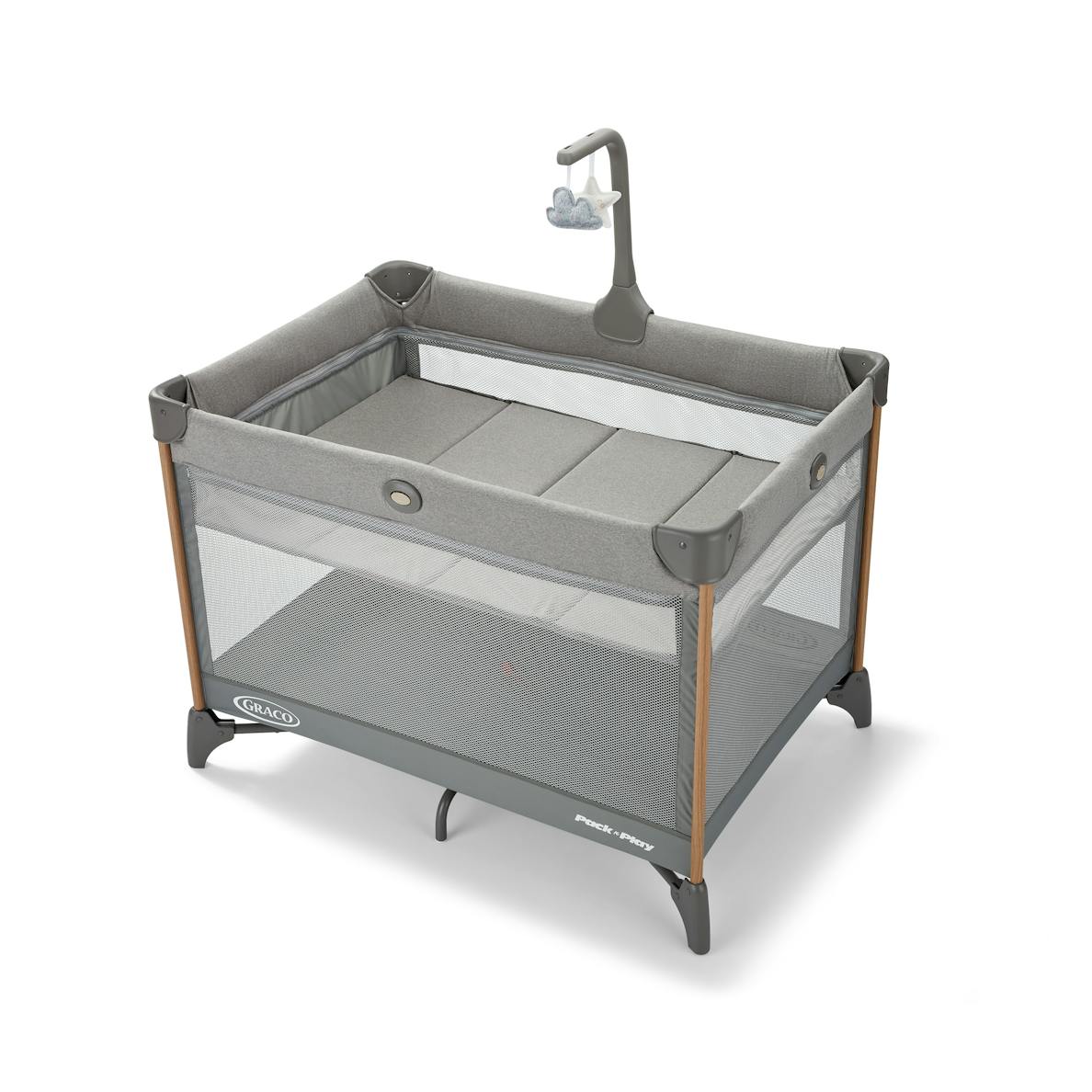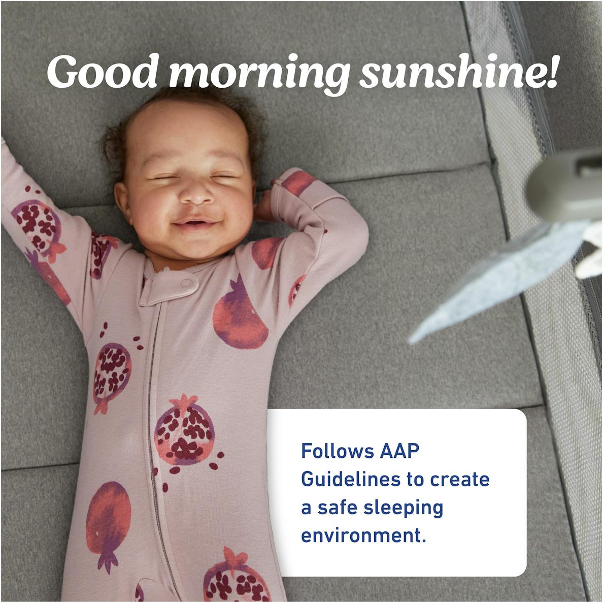 With an elevated design and luxuriously soft fabrics, the Graco Pack 'n Play On the Go Zip DLX provides a nurturing, cozy space for your little one to safely transition from playtime to naptime. A unique, full-size zip-in infant bassinet allows for improved visibility of baby, conveniently keeping your little one within sight and reach for added peace of mind. A modern design features contemporary woodgrain legs and the softest, premium knit fabrics throughout, ensuring elevated comfort for baby and delivering the perfect aesthetic for any home or nursery. It's a playard so beautiful you won't want to take it down! The durable frame and carry bag make it perfectly suited for effortless travel. Playard and bassinet follow AAP Safe Sleep Guidelines to create a safe sleep environment